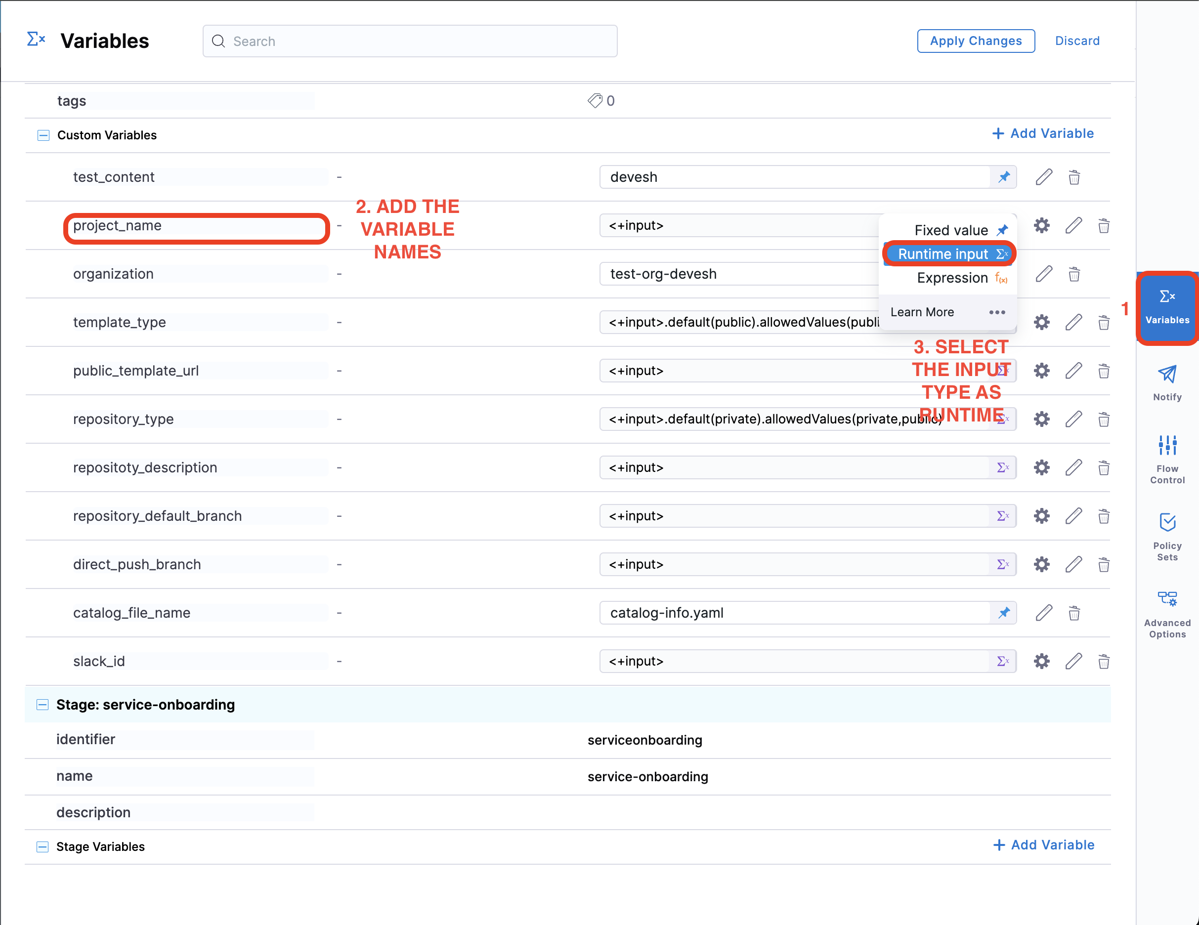 name: <+pipeline.variables.project_name>