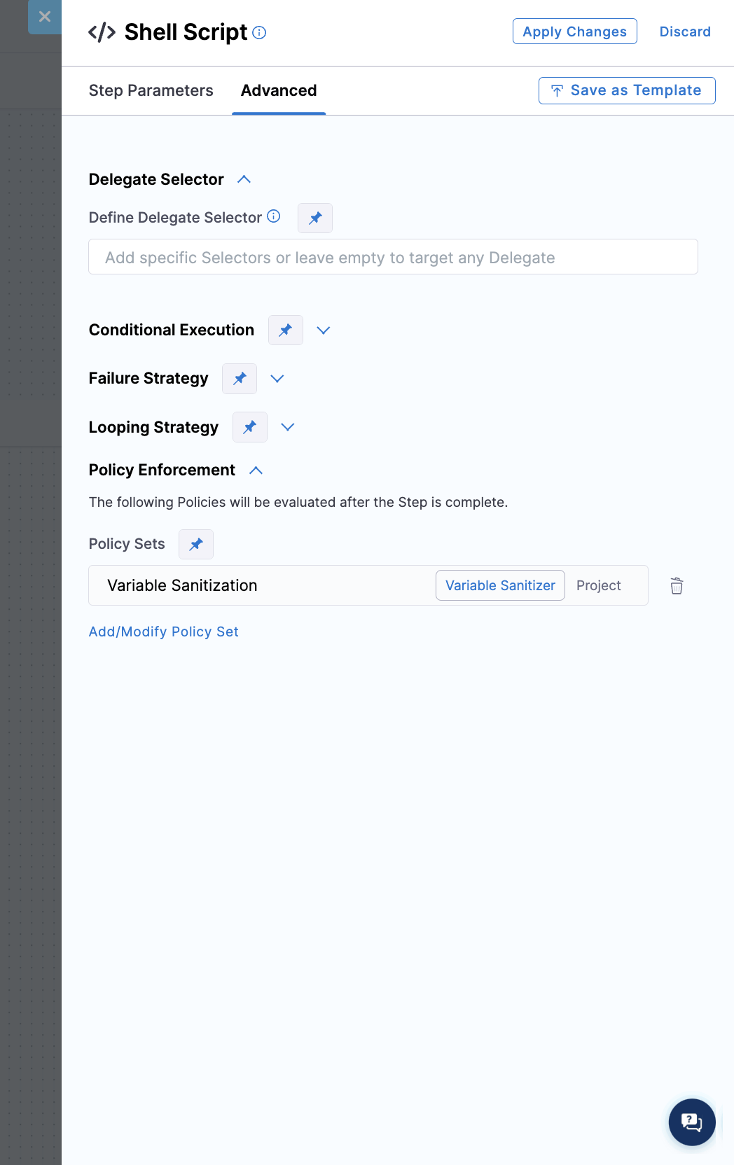 - Add a policy set to a step in the pipeline