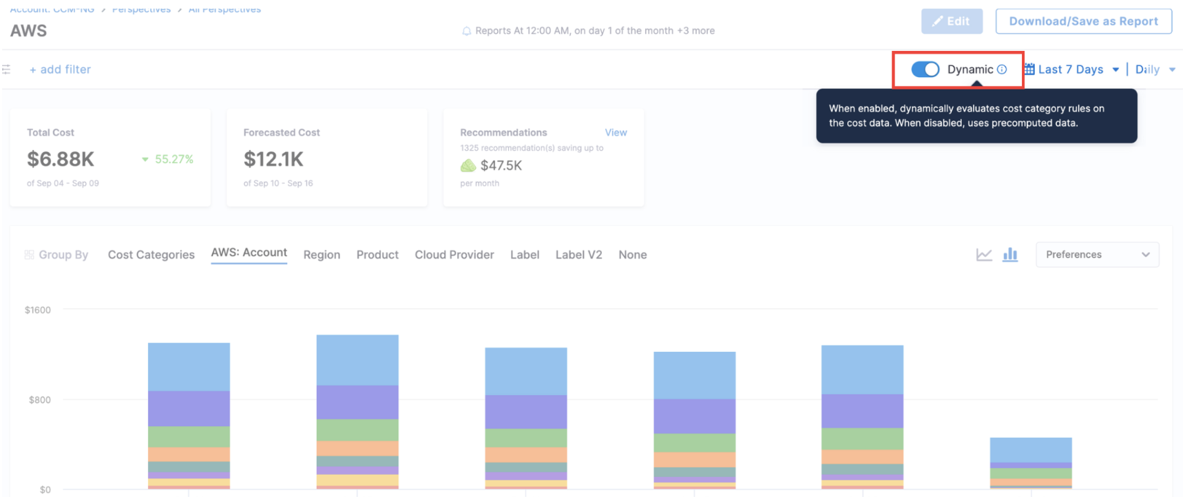 We’ve added a new Dynamic toggle on the Perspective page that gives you control over how cost category rules are applied: