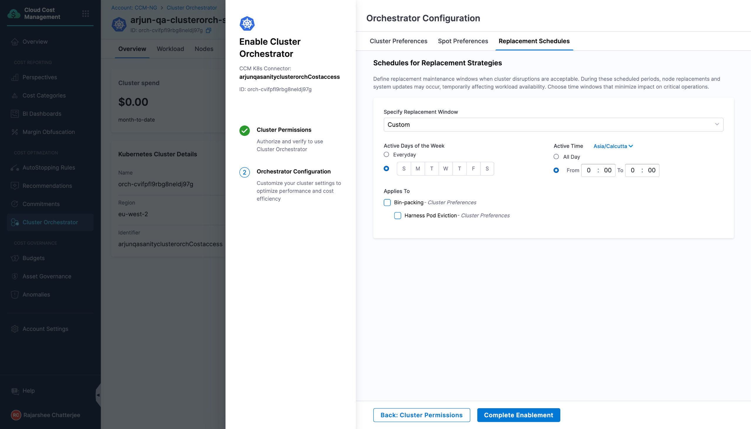 Cluster Orchestrator Setup Flow Improvement: We have made a minor improvement to the setup flow of the Cluster Orchestrator. After selecting Cluster Preferences, the workflow will now proceed to Spot Preferences, followed by Replacement Schedules, and finally to the Finish stage. This adjustment is intended to prevent any oversight in configuring essential settings during the setup process. [CCM-25325]