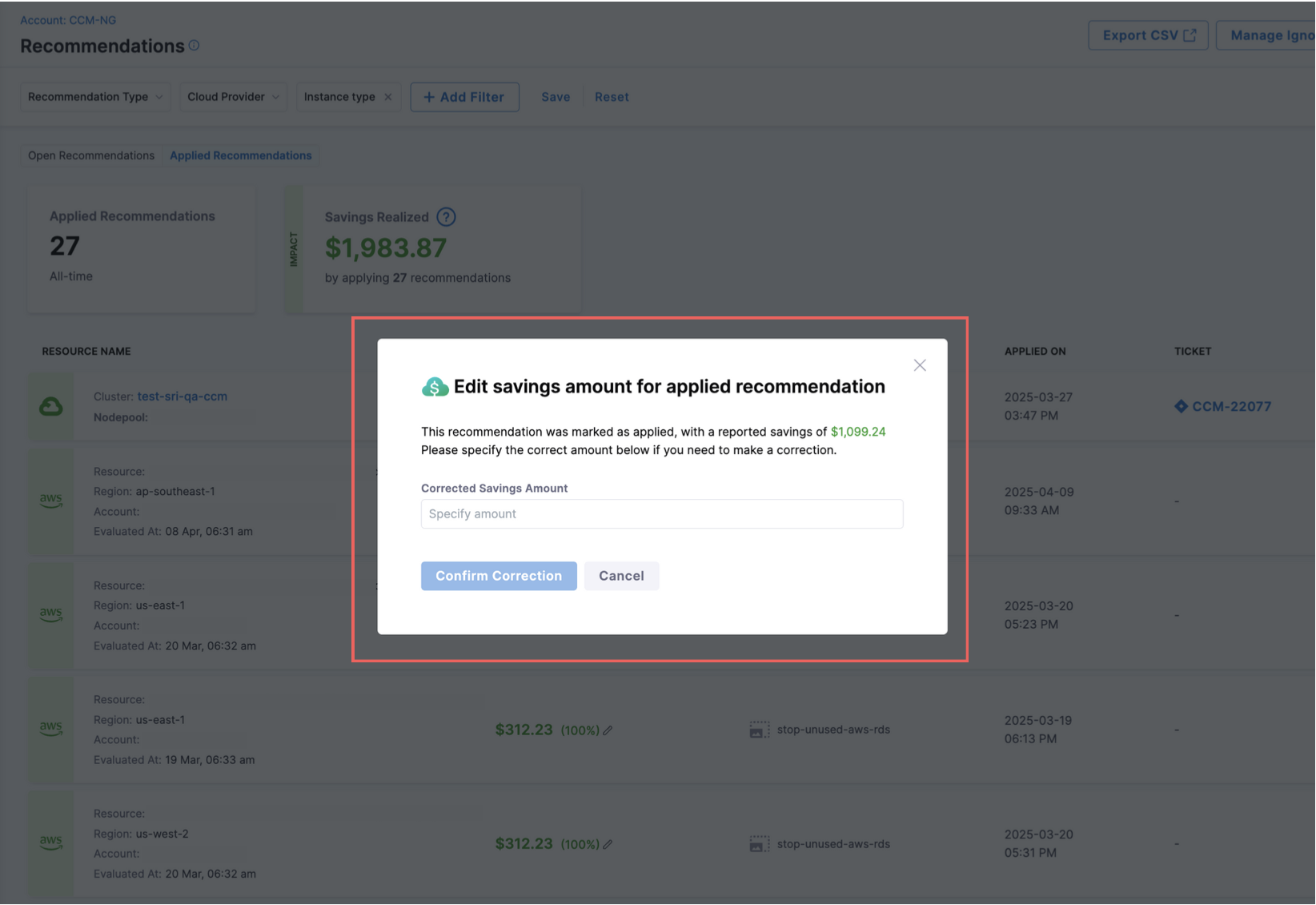 , ensuring consistent cost visibility across all recommendations. [CCM-23235]