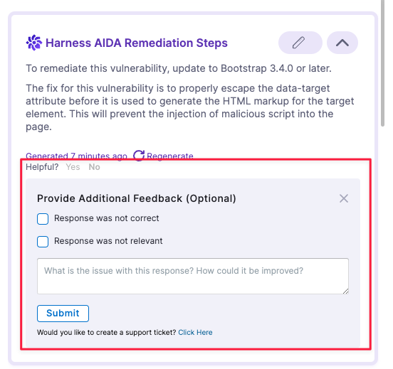 Added a tooltip to the Create Pull Request button in Harness AI recommendations, which displays the reason when the required conditions for opening a pull request are not met (STO-9014).